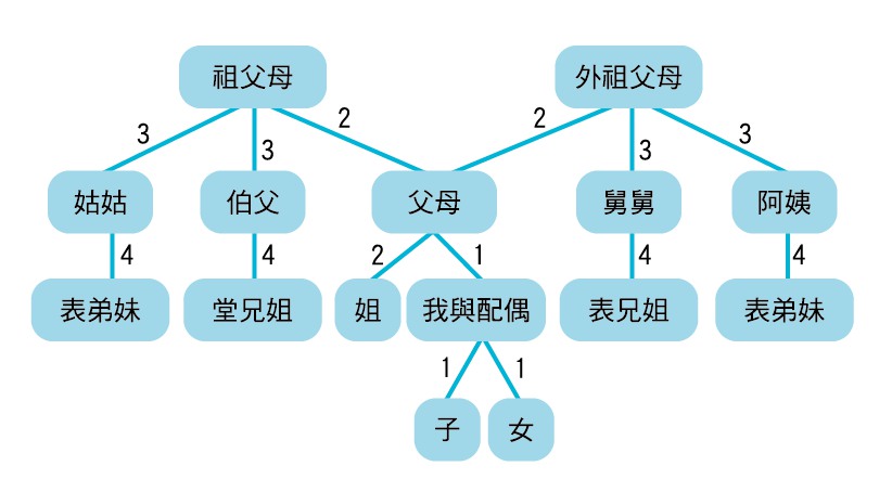 例如,阿公、爸爸及我三人,雖然都是直系親屬,然而阿公與爸爸親等較近,與我親等較遠。所以如果阿公過世,我與爸爸雖然都是阿公的直系血親卑親屬,但爸爸有權繼承而我沒有繼承權;然而,如果爸爸也過世或者拋棄繼承權,繼承權就落在我身上。